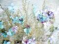 Soft Pink Hydrangea Blossom Upon Green Leafes with White Blossoms
