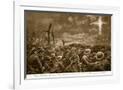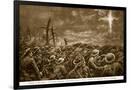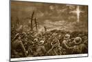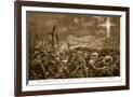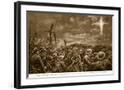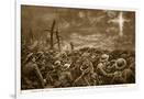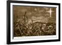 Soldiers Among the Trenches See a Cross in the Sky Made from Smoke Giclee Wall Art