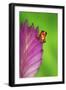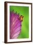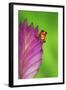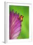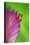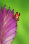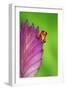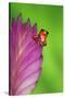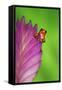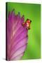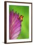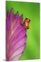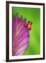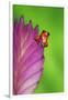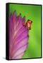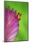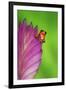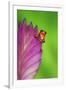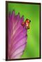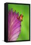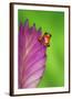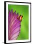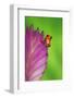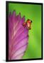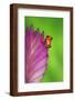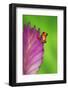South America, Panama. Strawberry poison dart frog on bromeliad flower. Premium Photo Print