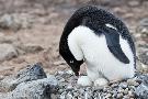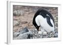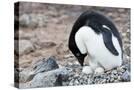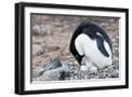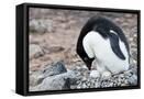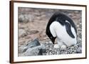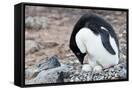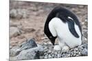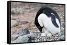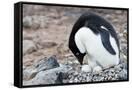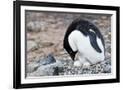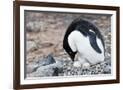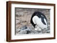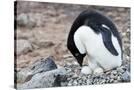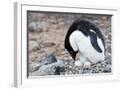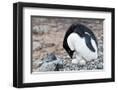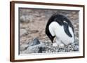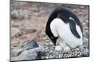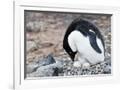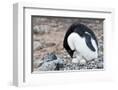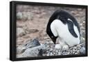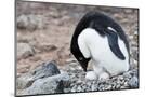 Southern Ocean, Antarctica. Adelie penguin moving its eggs around in the nest. Photo Print