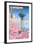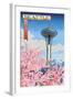 Space Needle - Cherry Blossoms Woodblock - Seattle, Washington