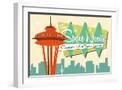 Space Needle - Mid Century Modern - Skyline and Sign - Lantern Press Artwork