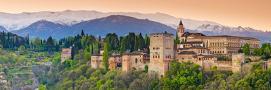 Spain, Andalucia, Granada Province, Granada, Alhambra Palace and Sierra Nevada Mountains