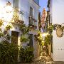 Spain, Andalusia, Cordoba. Calleja De Las Flores (Street of the Flowers) in the Old Town, at Dusk