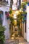 Spain, Andalusia, Cordoba. Calleja De Las Flores (Street of the Flowers) in the Old Town, at Dusk