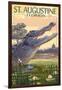 St. Augustine, Florida - Alligator Scene Wall Art Print