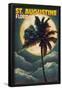 St. Augustine, Florida - Palms and Moon Wall Art Print