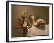 Still Life of a Roemer, an Overturned Silver Tazza, a Flute and a Ham, 1643 Giclee Wall Art