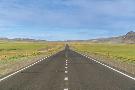 Straight paved road, Bayandalai district, South Gobi province, Mongolia, Central Asia, Asia