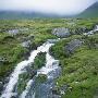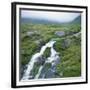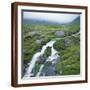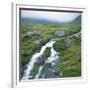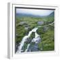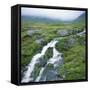 Stream Rushing over Rocks in a Wet Misty Environment, Estoroy Island, Faroe Islands, Denmark