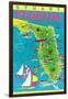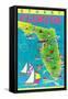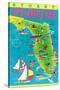 Stuart, Florida, Map with Attractions Wall Art Print
