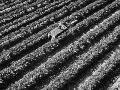 Subject: Aerial of Grape Harvest Workers. Fresno, California