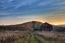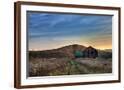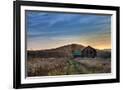 Sun Begins to Rise over a Rustic Old Barn. Photo Print