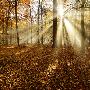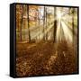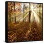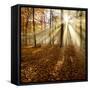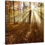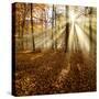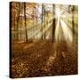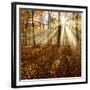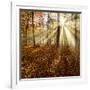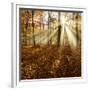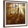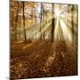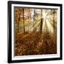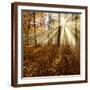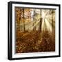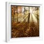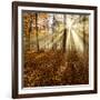 Sunrays and Morning Fog, Deciduous Forest in Autumn, Ziegelroda Forest, Saxony-Anhalt, Germany Photo Print