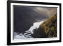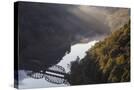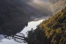 Sunrise filtering into the New River Gorge at Hawks Nest State Park in Ansted, West Virginia, USA