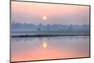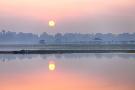 Sunrise over Taungthaman Lake and U Bein Bridge, Amarapura, Near Mandalay, Myanmar (Burma), Asia