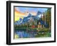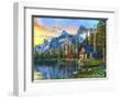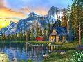 Sunset Log Cabin Wall Art Print