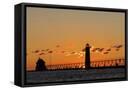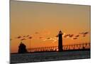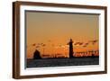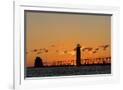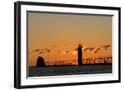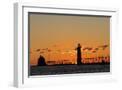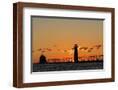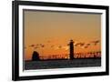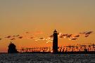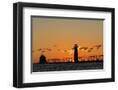 Sunset Silhouettes the Grand Haven Lighthouse in Grand Haven, Michigan, Usa