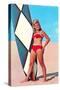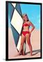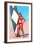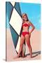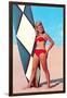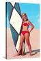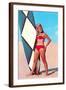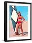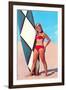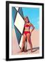 Surfer Girl in Red Two-Piece Wall Art Print