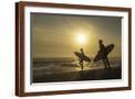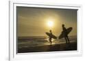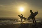Surfers on Bloubergstrand at sunset, Cape Town, Western Cape, South Africa, Africa