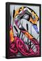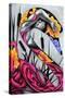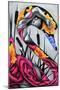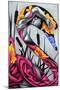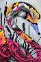 Presents a graceful fusion of human form and abstract elements, with the figure intertwined in flowing pink patterns that evoke elegance and transformation. The vibrant bursts of yellow and purple flowers contrast with the monochromatic tones, symbolizing beauty emerging from introspection. The composition exudes a dreamlike quality, inviting viewers to explore themes of metamorphosis, emotion, and inner strength.