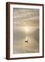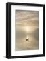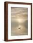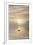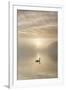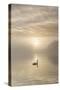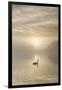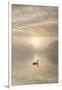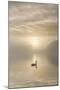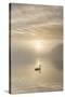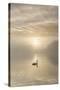 Swan on misty lake at sunrise, Clumber Park, Nottinghamshire, England, United Kingdom, Europe