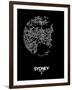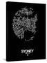 Sydney Street Map Black Wall Art Print