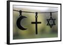 Symbols of Islam, Christianity and Judaism, Eure, France Photo Print