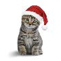 Tabby Cat Kitten Wearing Christmas Hat