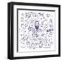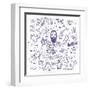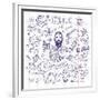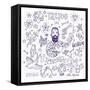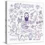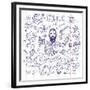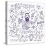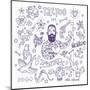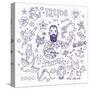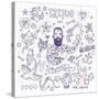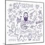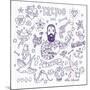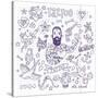 Tattoo Vector Set. Cartoon Tattoo Elements in Funny Style: Anchor, Dagger, Skull, Flower, Star, Hea