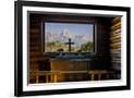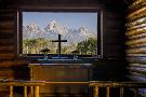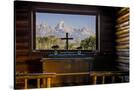 Tetons Through Window in the Episcopal Chapel of the Transfiguration, Wyoming Photo Print
