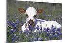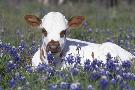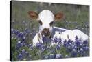 Texas Longhorn Calf in Bluebonnets (Lupine Sp.), Texas Hill Country, Burnet, Texas