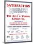 'The Ault & Wiborg London Co. Advert - Satisfaction', 1919 Giclee Wall Art