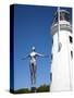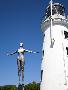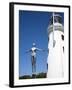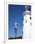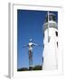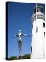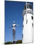 The Diving Belle Sculpture and Lighthouse on Vincents Pier, Scarborough, North Yorkshire, England