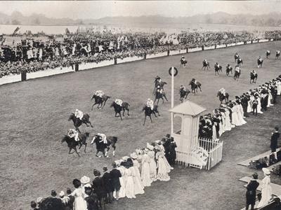 'The Finish for the Royal Hunt Cup', c1903. The Royal Hunt Cup is a flat handicap horse race in Great Britain open to horses aged three years or older. It is run at Ascot over a distance of 1 mile (1,609 metres), and it is scheduled to take place each year in June. From Penrose's Pictorial Annual 1903-4, edited by William Gamble. [A. W. Penrose & Co., London, 1903-4]