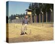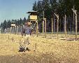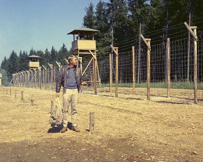 Steve McQueen as Hilts 'The Cooler King' in The Great Escape. By fence and watch towers