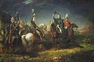 The Meeting of the Duke of Wellington and Field Marshal Blucher on the Evening of the Victory of Waterloo at La Belle Alliance oil on canvas Barker Thomas Jones Private Collection Photo Bonhams London UK The Bridgeman Art Library