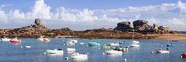 The Natural Monument Le De and Fishing Boats, Tregastel, Cotes D'Armor, Brittany, France, Europe