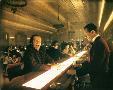 Jack Nicholson as Jack Torrance and Joe Turkel as Lloyd the Bartender in The Shining. In bar grinning