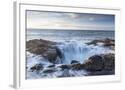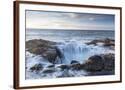 Thor's Well with surf cascading into the well along the Oregon coastline