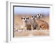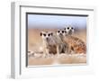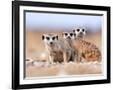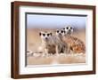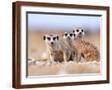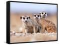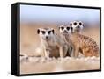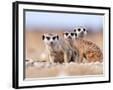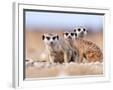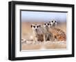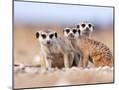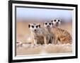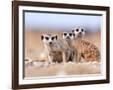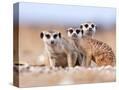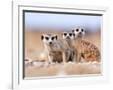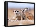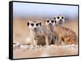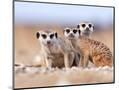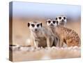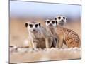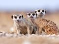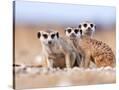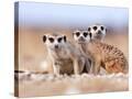 Three Curious Adult Meerkats at the Edge of their Family Den Pose for the Camera. Botswana.