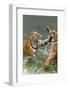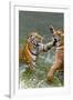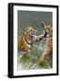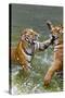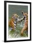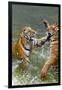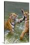 Tigers Play Fighting in Water, Indochinese Tiger, Thailand