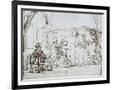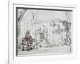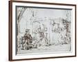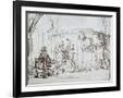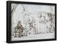 Tobias and the Angel, Pen and Brown Ink Drawing Giclee Wall Art