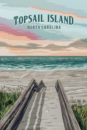 Topsail Island, North Carolina - Boardwalk - Lantern Press Artwork