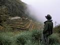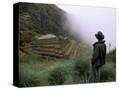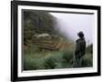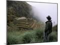 Tourist Watches Clouds Swirl Around Mountains, Inca Trail, Peru, South America
