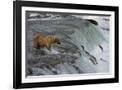 Tourists photographing Brown Bear catching salmon at Brooks Falls, Katmai National Park, Alaska