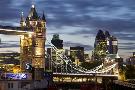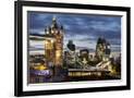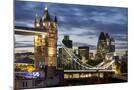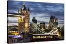 Tower Bridge and the City of London at Night, London, England, United Kingdom, Europe