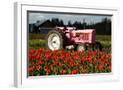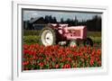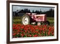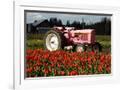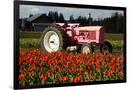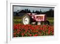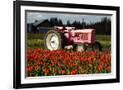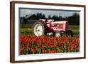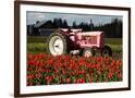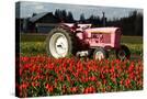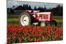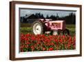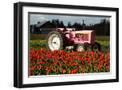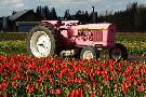 Tractor in a tulip field, Skagit Valley Tulip Festival, Skagit Valley, Washington State, USA