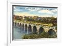 Train Crossing Stone Arch Bridge, Minneapolis, Minnesota