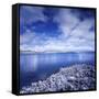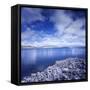 Tranquil Lake and Rocky Shore Against Cloudy Sky, Sardinia, Italy